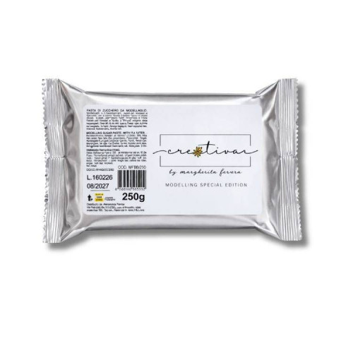 Creativa Modelling Paste je kvalitní modelovací cukrářská hmota určená pro tvorbu jemných a detailních dekorací na dorty a dezerty. Díky své pružné a pevné konzistenci se velmi dobře tvaruje a je ideální pro modelování květin, postaviček, ozdob i drobných detailů. Hmota drží tvar, nelepí se a po zaschnutí zpevní, takže dekorace zůstávají stabilní.